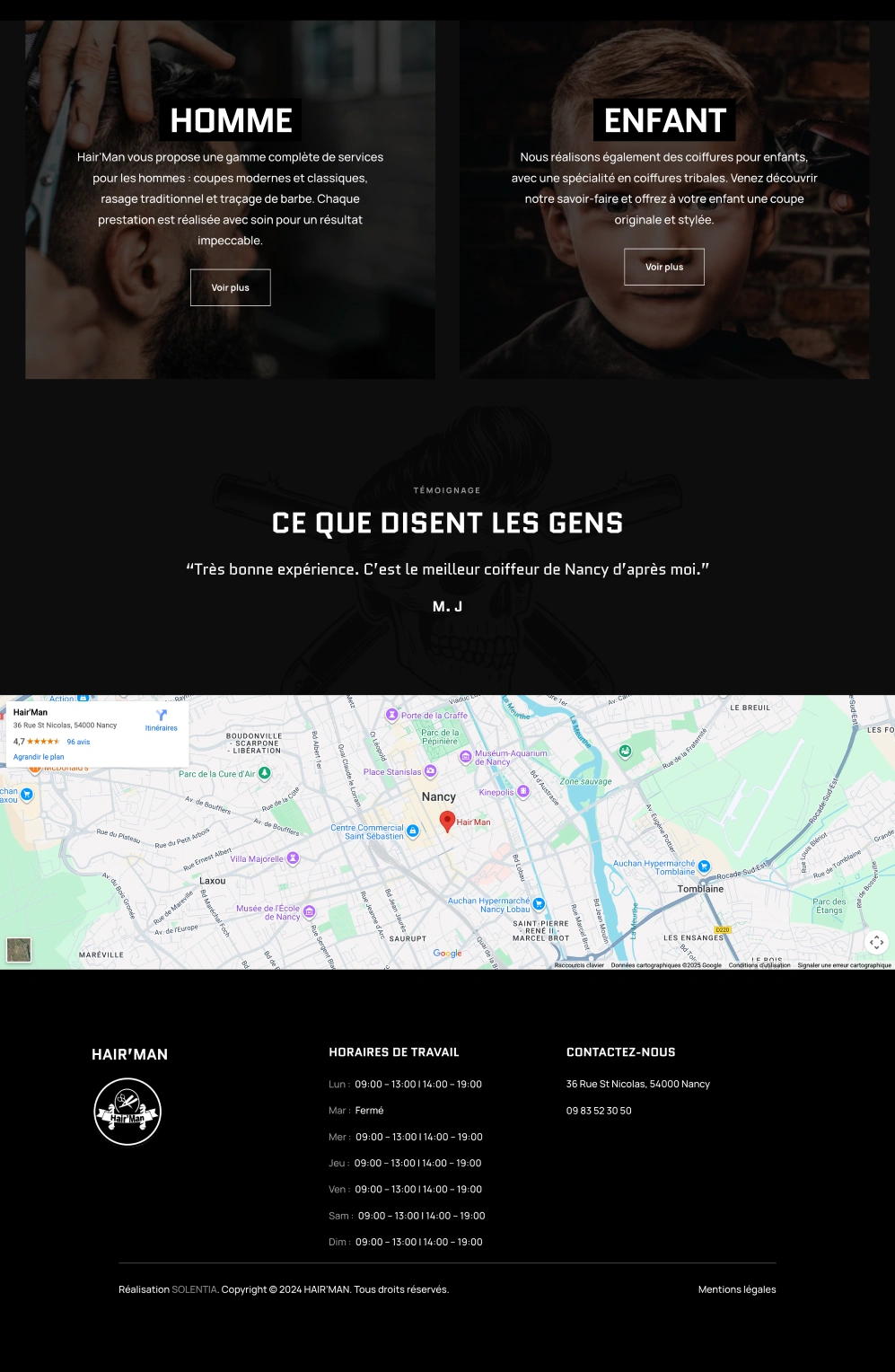 We designed a modern and elegant website to showcase Hair’Man’s services, reflecting its refined atmosphere and making online booking effortless.